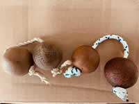 作り方は、間伐材からロール状の和紙を作り数ミリ幅に裁断し巻き取り撚糸し作ります。