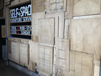 佐久間木材の倉庫内に積まれた合板を撮影していく外国人観光客の方もちらほらと。